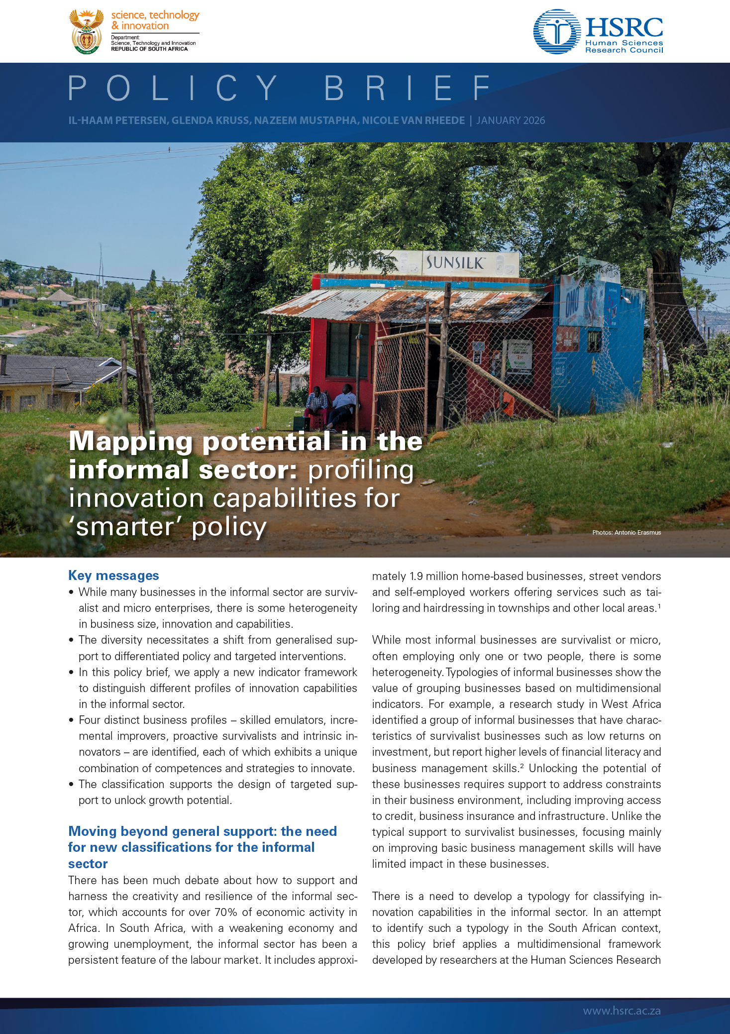 Informal businesses significantly contribute to employment and income generation in South Africa. As HSRC research shows, innovation is crucial to their survival. On 24 and 25 April 2024, the HSRC held a workshop with informal business owners at Philippi Village, Cape Town, to share a new evidence-based toolkit designed to support informal businesses in strengthening…